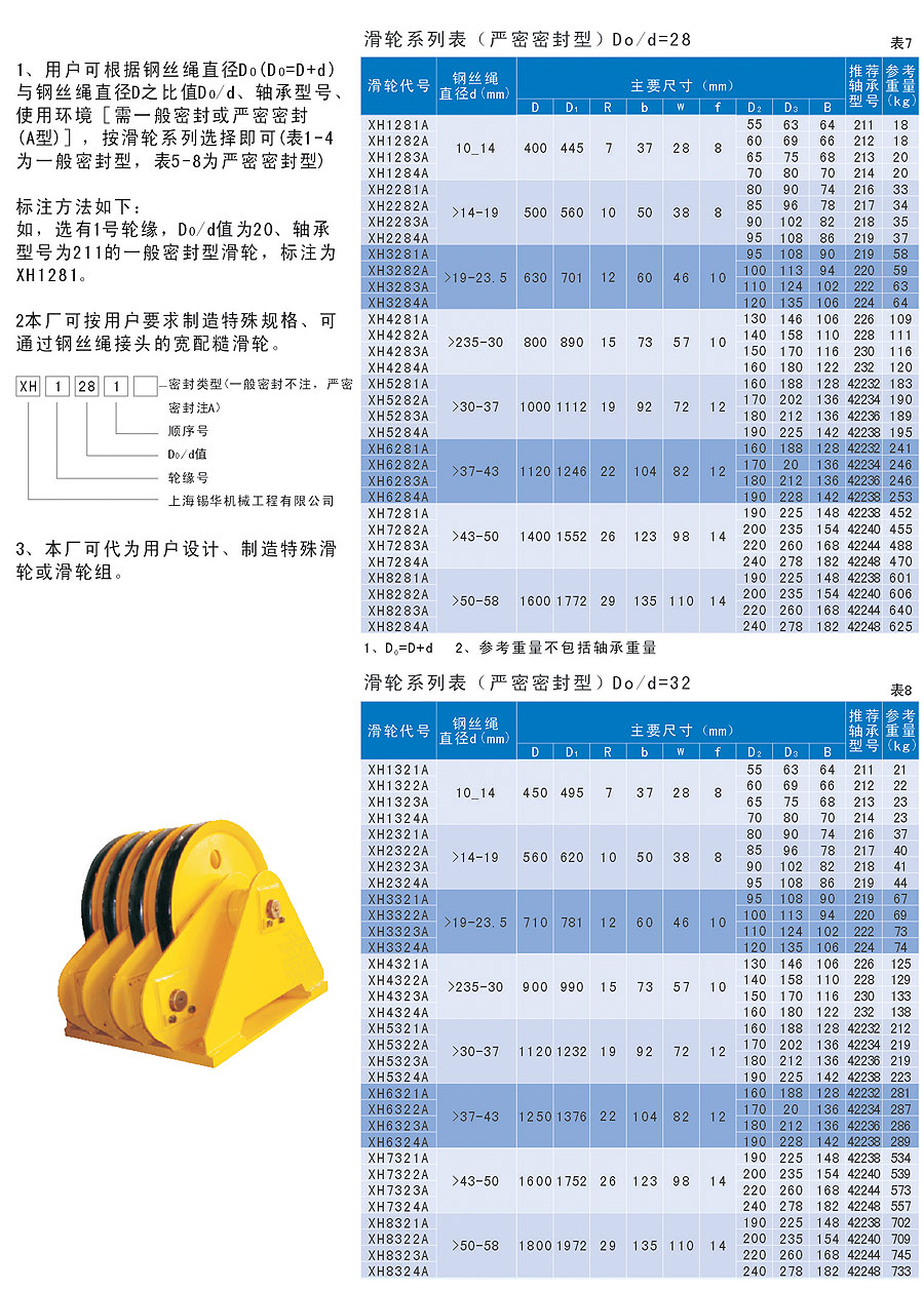 滑車(chē)按輪數(shù)的多少分為單門(mén)滑車(chē),雙門(mén)滑車(chē)和多門(mén)滑車(chē)。按滑車(chē)與吊物的連接方式可分為吊鉤式滑車(chē),鏈環(huán)式滑車(chē),吊環(huán)式滑車(chē)和吊架式滑車(chē)四種。一般中小型的滑車(chē)多司于吊鉤式、鏈環(huán)式和吊環(huán)式,而大型滑車(chē)采用吊環(huán)式和吊梁式。按輪和軸的接觸不同可分為輪軸間裝滑動(dòng)軸承及滾動(dòng)軸承兩種。按夾板是否可以打開(kāi)來(lái)分,有開(kāi)口滑車(chē)和閉口滑車(chē)。開(kāi)口滑車(chē)的夾板是可以打開(kāi)的,便于裝繩索,一般的都是單門(mén)滑車(chē),它常用于扒桿底腳處作導(dǎo)向滑車(chē)用?;?chē)按使用的方式不同又分為定滑車(chē)和動(dòng)滑車(chē)。使用方便,用途廣泛,可以手動(dòng),機(jī)動(dòng)。主要用于工廠、礦山、農(nóng)業(yè)、電力、建筑的生產(chǎn)施工,碼頭、船塢、倉(cāng)庫(kù)的機(jī)器安裝,貨物起吊等。