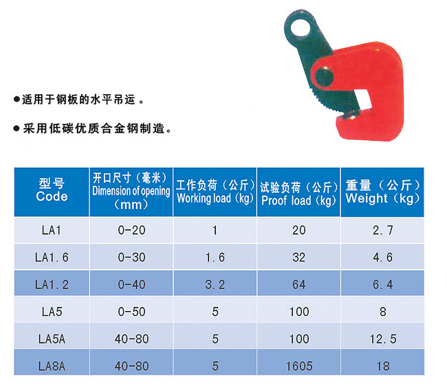 鋼板鉗主要是應(yīng)用在鋼板的水平、豎直吊運,型鋼及油桶的吊運等方面。由于鋼板鉗采用的是合理的力學(xué)原理,使其具有體積小、重量輕、使用安全、結(jié)構(gòu)緊湊、結(jié)構(gòu)緊湊、安裝調(diào)整方便,工作效率高等諸多特點。